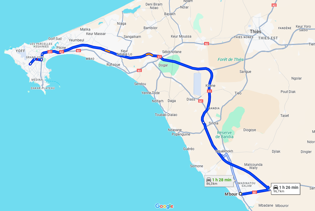 cette ville est situe dans la petite cote au senegal soit à 80 km de dakar ; Destination idéale pour les amateurs de nature et de culture.
