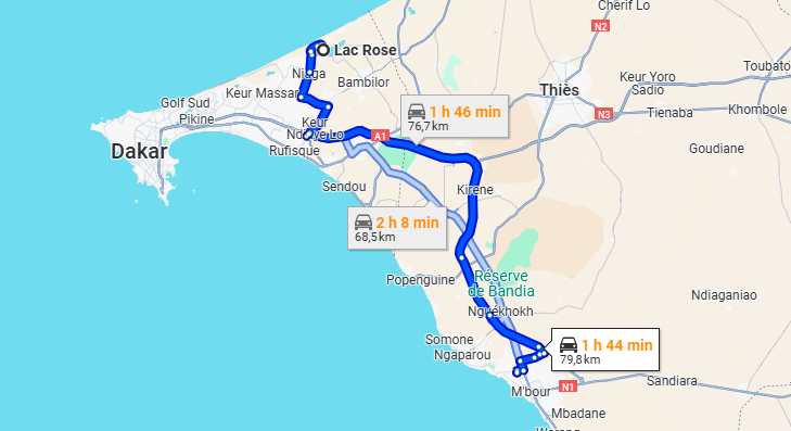 Transfert privé avec chauffeur vers le Lac Rose – Allo Taxi Sénégal